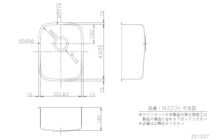 | 商品名 | ベーシックシンク N320V ●W320×D430×H180 |