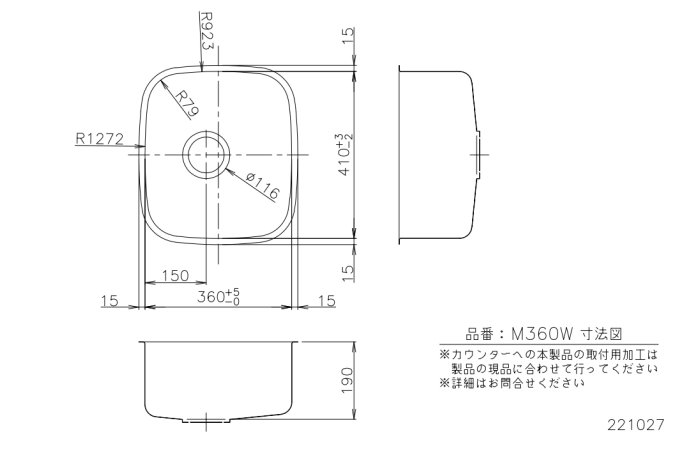 | 商品名 | ベーシックシンク M360W ●W360×D410×H190 |