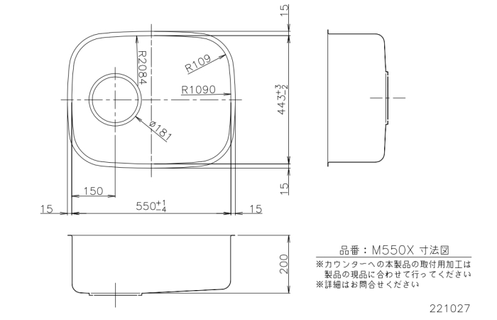 | 商品名 | ベーシックシンク M550X ●W550×D440×H200 |
