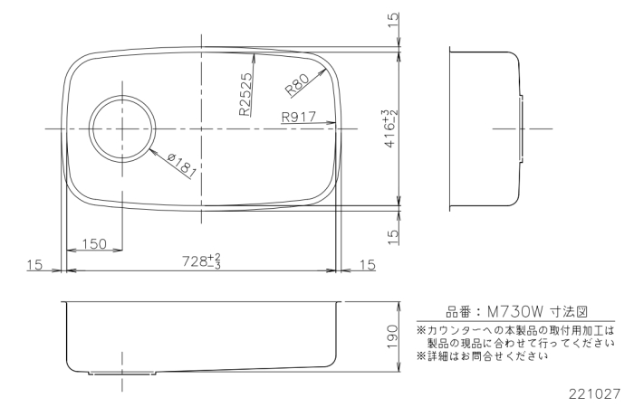 | 商品名 | ベーシックシンク M730W ●W730×D410×H190 |