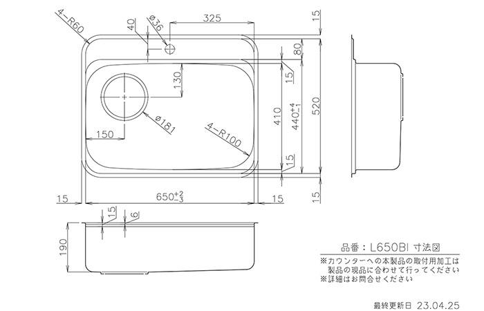 | 商品名 | アドバンスシンク L650BI ●W650×D410/520×H190 |