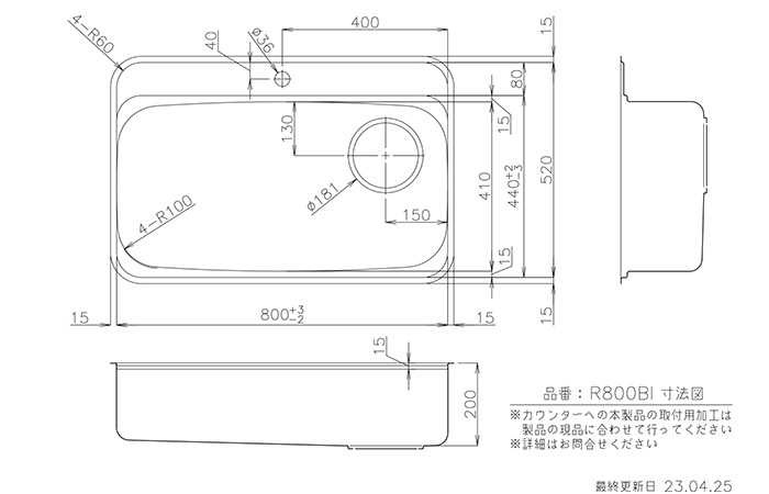 | 商品名 | アドバンスシンク R800BI ●W800×D410/520×H190 |