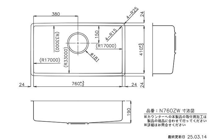 | 商品名 | プレミアムシンク N760ZW ●W760×D410×H190 |